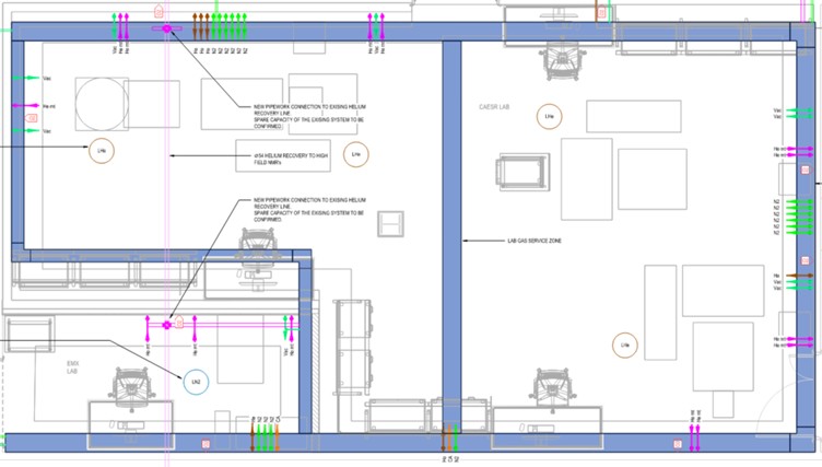 The Chemistry Research Laboratory, where the CAESR project is located within the basement, is a renowned building in the University of Oxford. It houses a combination of laboratories, including ISO 7 cleanrooms, workshops, and containment laboratories, supporting high-tech and precise scientific research activities. This unique setting accommodates the specialised equipment and experimental set-ups required for CAESR’s cutting-edge electron spin resonance research.